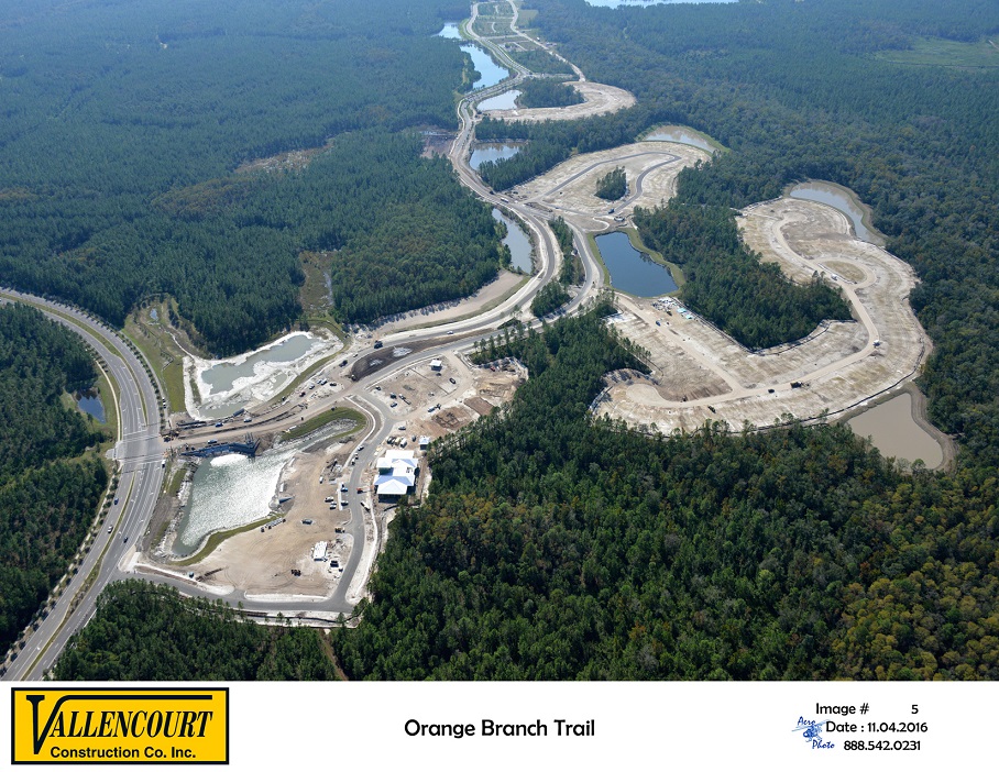 Orange Branch Trail is the newest addition to Mattamy’s RiverTown Community and features approximately 1,000 new home lots, with miles of walking trails. Major construction elements of the project included: land clearing, site grading, roadway and multi-use path construction, utility main distribution systems, signalization, storm-water management ponds, and drainage systems.